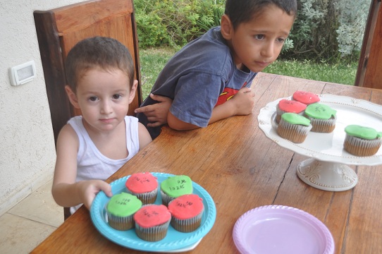 כשהעוגות קרות לגמרי מרדדים בצק סוכר על משטח מקומח באבקת סוכר. אפשר לקנות בצק סוכר צבעוני מוכן. לשים היטב את הבצק ואז קורצים ממנו צורות של תפוחים או יונים (חותכנים נמכרים בכל חנויות העוגות) שמים בזהירות על המאפינס ומביאים במגש מנקר עיניים ובחיוך גדול. המשקיענים יותר יכולים לכתוב בטוש אכיל שנה טובה או לקשט ביונים קטנות.