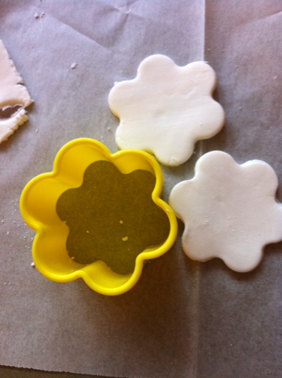 בעזרת חותכני עוגיות יצרתי צורות של פרח ואוברול
