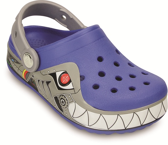 הזוג השני הוא נעלי קרוקס כריש מהדגמים הכי חדשים שיצאו, כחובב גדג'טים הוא נהנה מהאורות של עיני הכריש. גימיק מעניין שבעיקר עוזר לי לאתר אותו בגן המשחקים 🙂