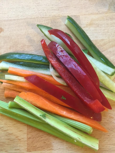 כל מה שצריך זה ירקות שאתם אוהבים. אני העדפתי פלפל ירוק, גמבה (בשביל הצבע), סלרי, מלפפון וגזר.