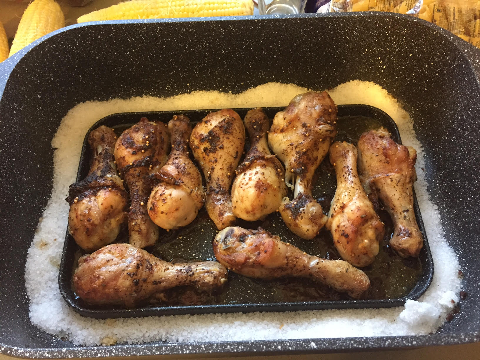 ובאותו רוסטר הכנתי עוף. מסביב מלח גס בתעלה מיוחדת ועל העוף תערובת לגריל. יצא מושלם