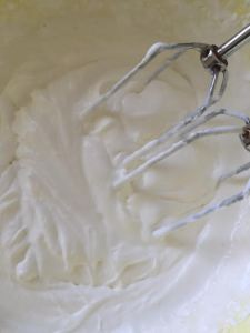 מקציפים את השמנת וכשהיא מוכנה מוסיפים את קרם הפטל.