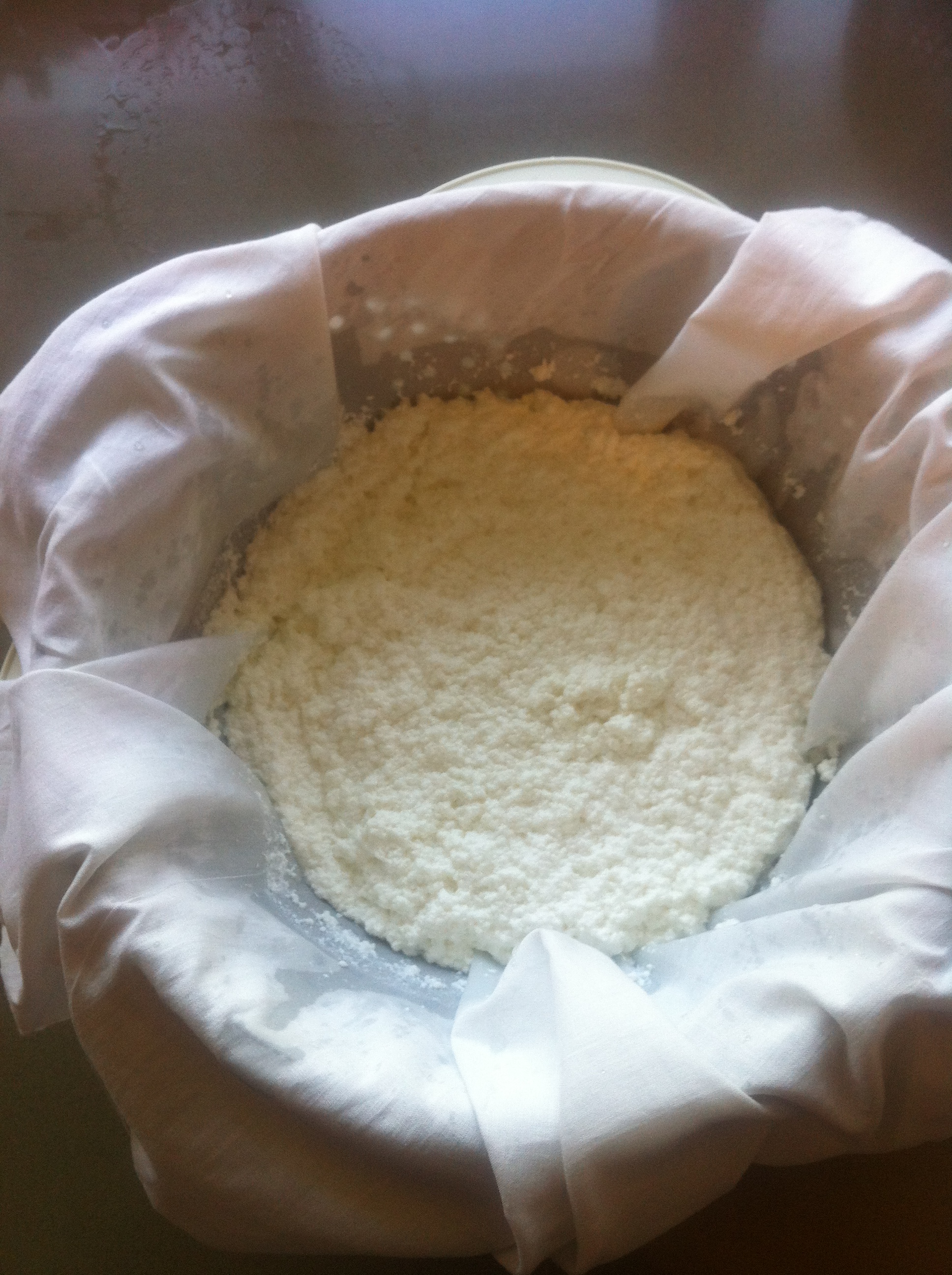 - בבוקר מוציאים מהמקרר, שופכים את יתרת המים והופכים לקערה. מה שנוצרת זו גבינה בצורת המסננת, בעלת טעם עדין