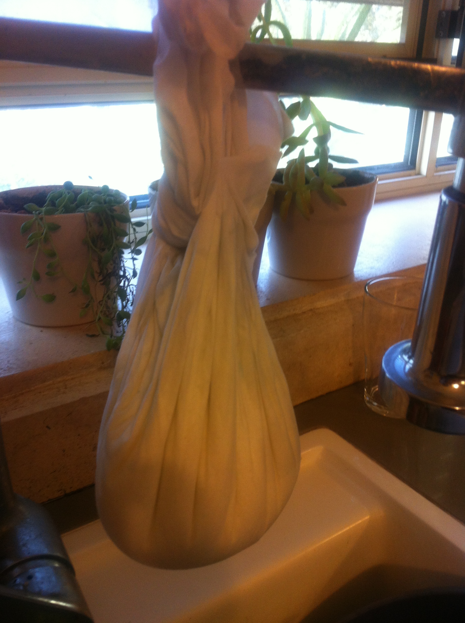 - אחרי 4-5 שעות, שרב המים סוננו, משאירים במסננת בתוך החיתול ומעבירים למקרר ללילה שלם.