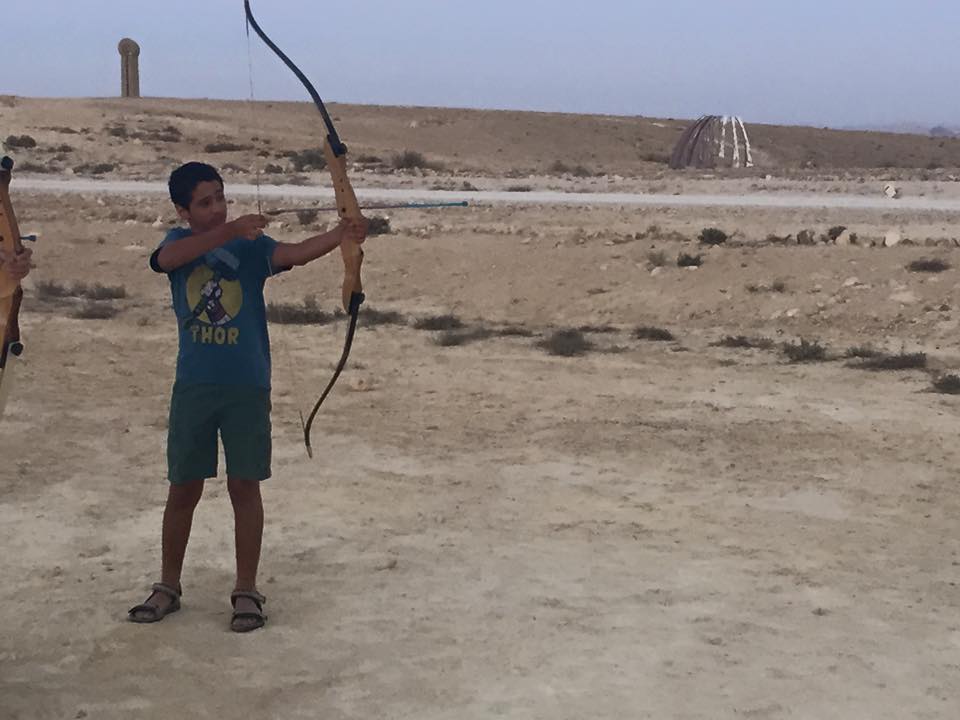 חזרנו לצל מדבר לסדנת חץ וקשת. מזג האוויר כבר התקרר לגמרי וחץ וקשת הם פעילות מעניינת לכל הגילאים. אצלנו הילדים ניסו בעבר לירות בחץ וקשת בסלובניה וכאן זכו להסברים והכוונה וניסיון לירות למטרות וגם למרחק.